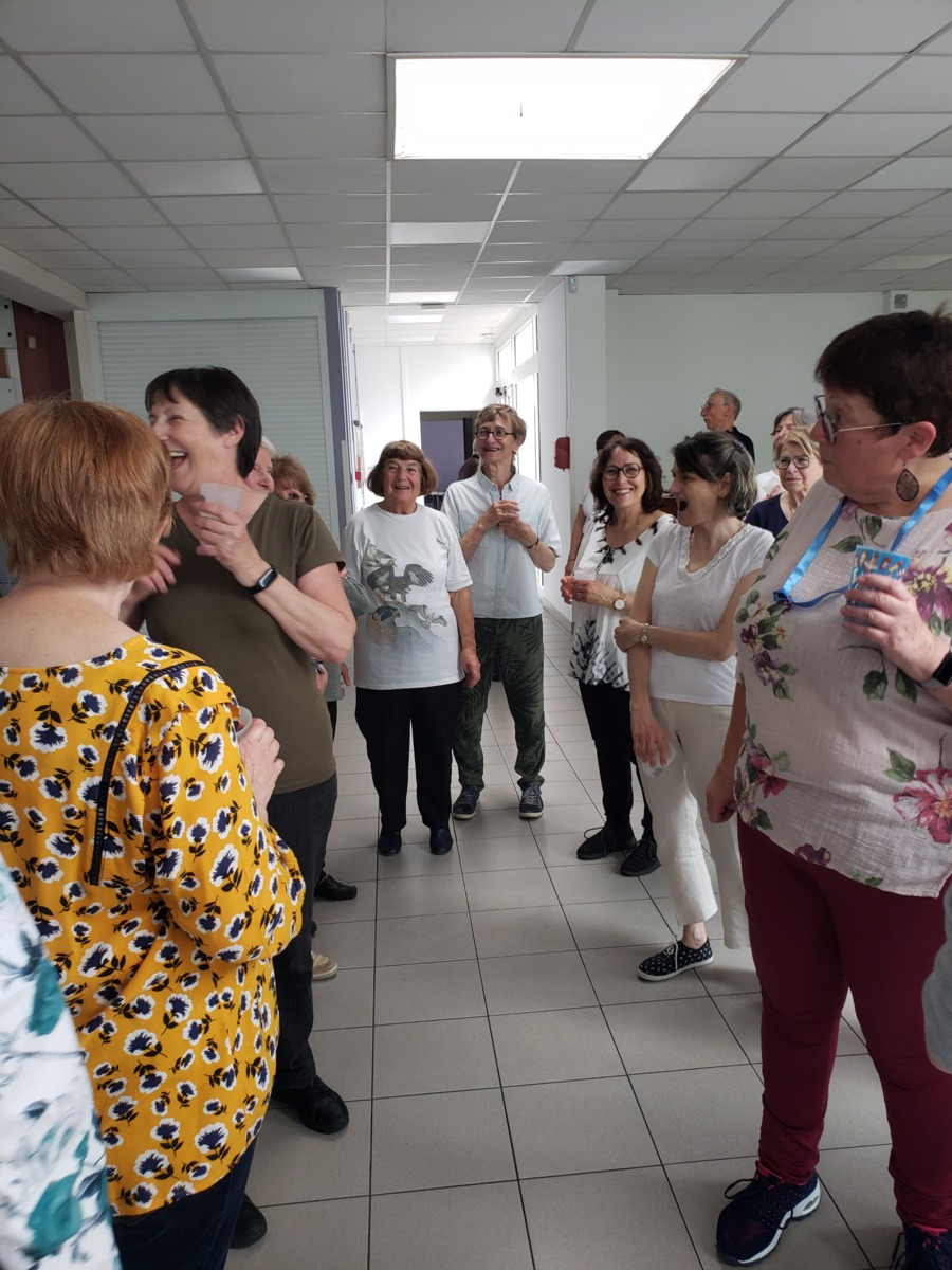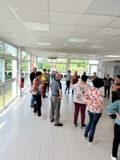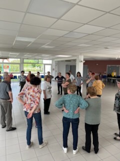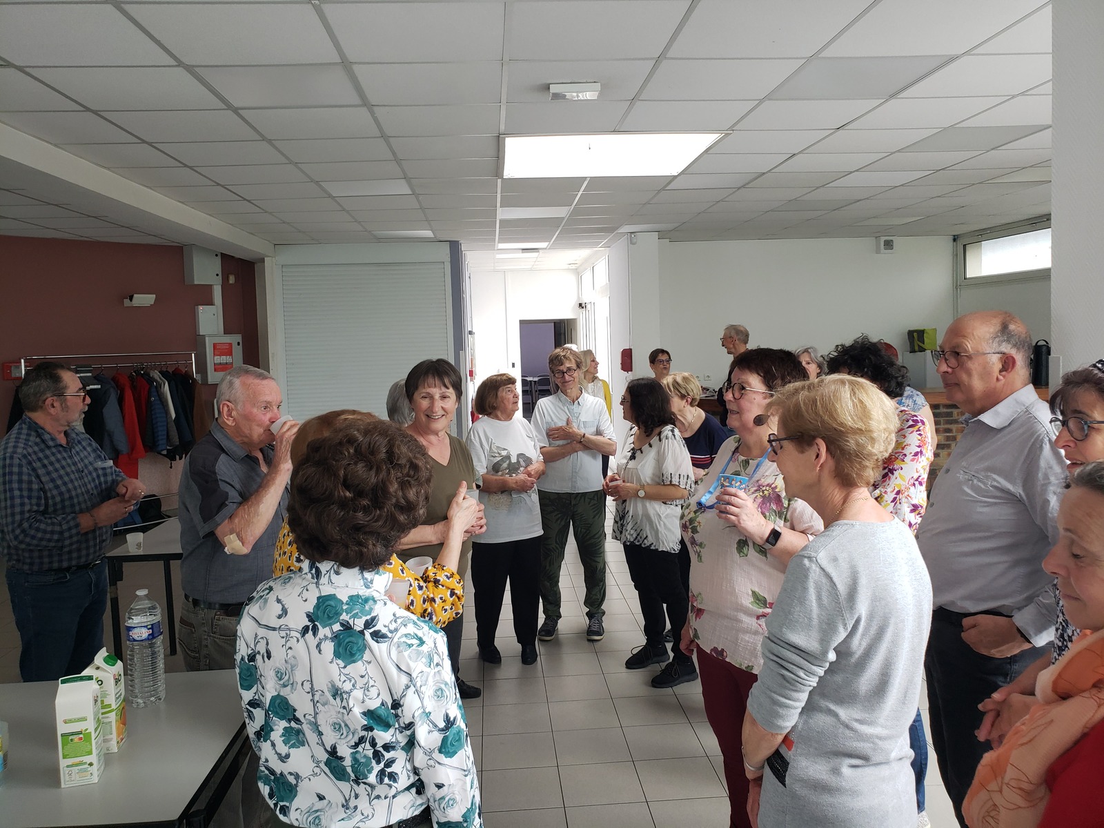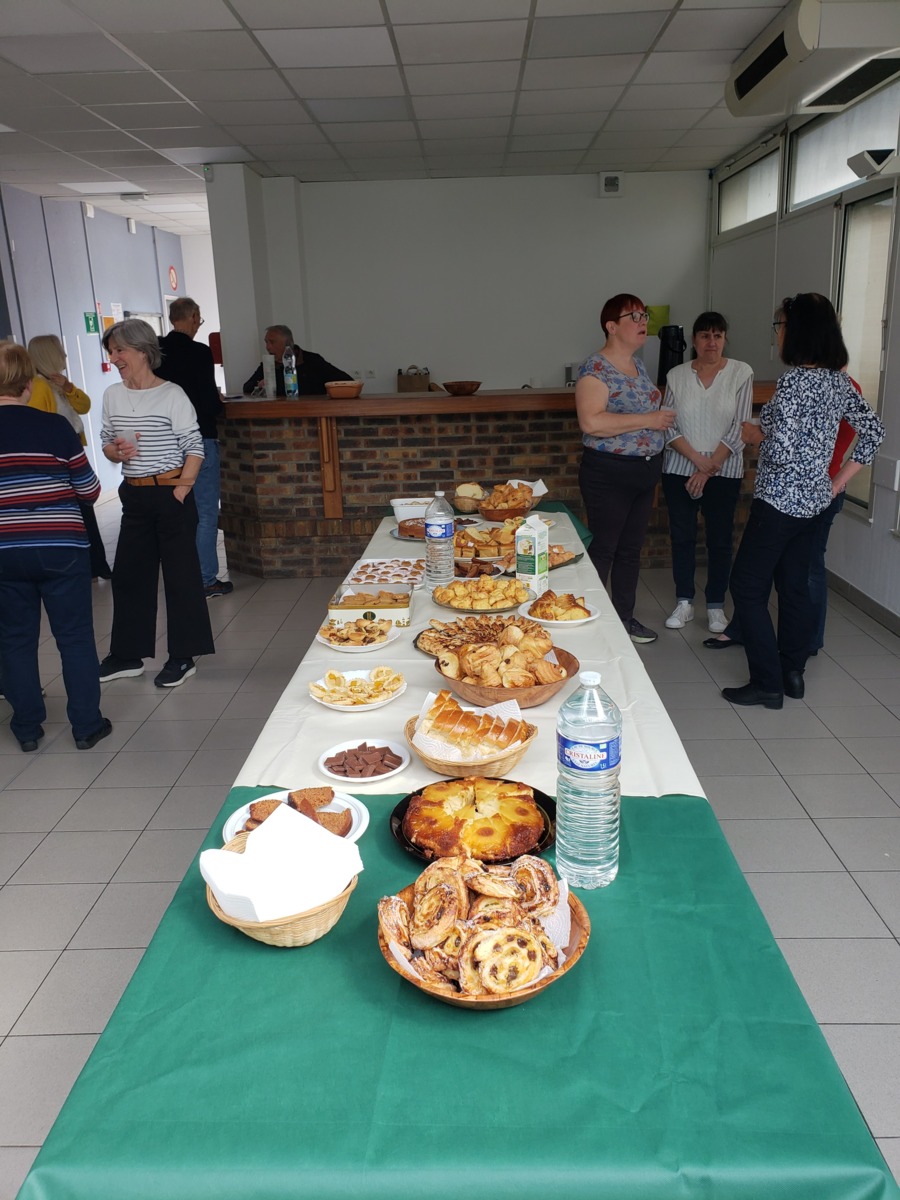 "Après-midi festif et convivial, samedi 26.04.2025, après la danse collective et les marches à l'Herveline, le réconfort d'un goûter partagé autour du verre de l'amitié".