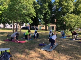 La dernière séance de yoga du jeudi dans le parc de Lamballe : sport et convivialité